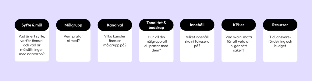 Dina svar blir grunden till allt. Ett tydligt syfte hjälper dig prioritera rätt kanaler, rätt innehåll och rätt ton.
